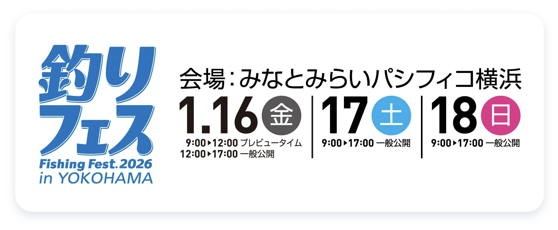 来たる2026.01.16(金)・17(土)・18(日)は釣りフェス2026YOKOHAMAです。
